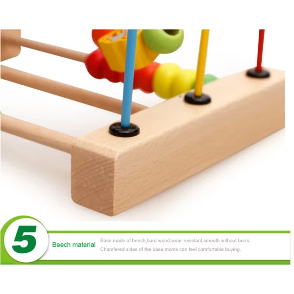 The bottom of the toy comes with 2 row of straight line track beads. Many wooden bead maze doesn’t have this feature. Play it as abacus.